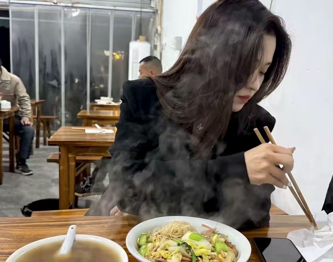 说完,她走进面馆。