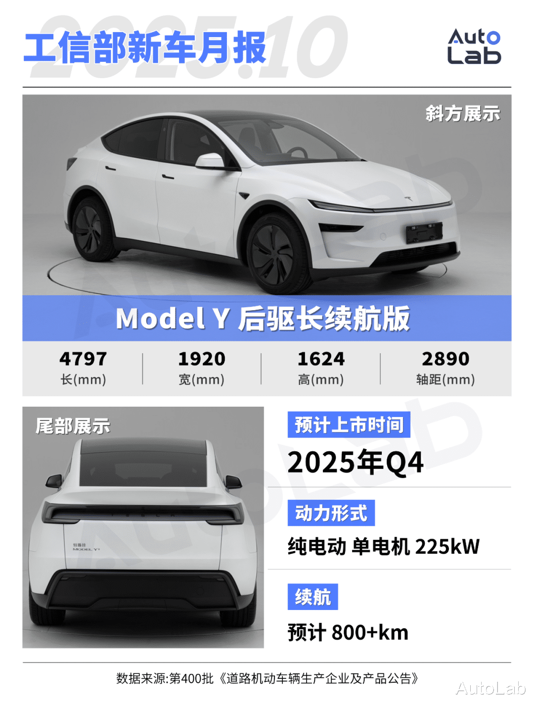 参考8月上市的后驱长续航版Model 3, 这次的新车也用上了和它相同的225kW单电机,电池则是采用了LG新能源提供的三元锂电池,应该和四驱长续航版共用的是同一块。