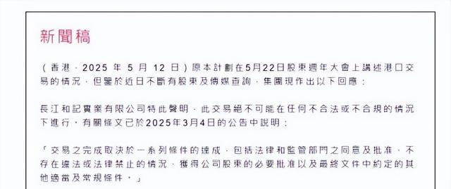 当大家都在关注印巴冲突时,5月12日,长实集团发布了一片通告,称“交易不会在任何不合法不合规的情况下发生的”。
