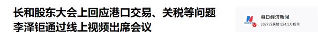 信息源:长和股东大会上回应港口交易、关税等问题 李泽钜通过线上视频出席会议 每日经济新闻2025-05-22。