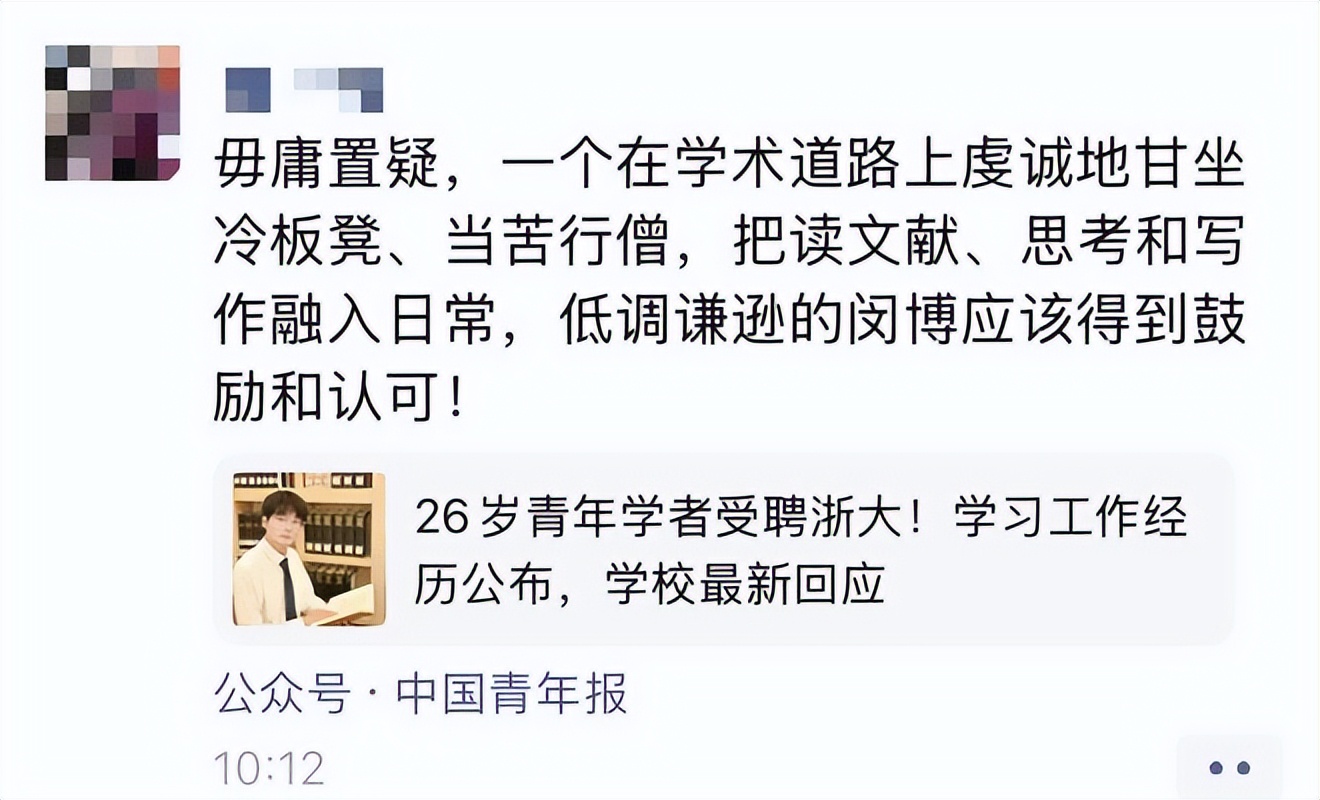据红星新闻报道,近日,出生于1999年、现年26岁的闵超受聘为浙江大学马克思主义学院“新百人计划”研究员,具有博士研究生招生资格,引发了网络关注。