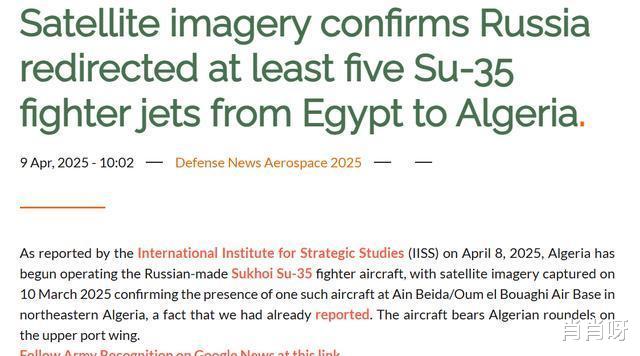 4月9号,美国“Army Recognition”网站上说,“IISS”那边传来消息,阿尔及利亚空军,就是AAF,已经拿到了第一架苏-35SE战斗机。而且啊,在共青城那个飞机制造厂,还有四架苏-35SE战斗机正等着呢,上面都印上了AAF的标志。为啥这些苏-35SE能飞到北非去呢?据说啊,它们是要先替一下苏-57的位置。