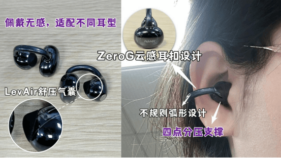 3、佩戴轻松久戴不累:开放式耳机的优势就是长时间戴着不累。重量轻、夹力适中、贴耳部分用亲肤软材质,才不会压耳或摩擦生疼。优秀耳机还能在运动或通勤中保持稳固,不掉落,也不会让耳朵闷热。