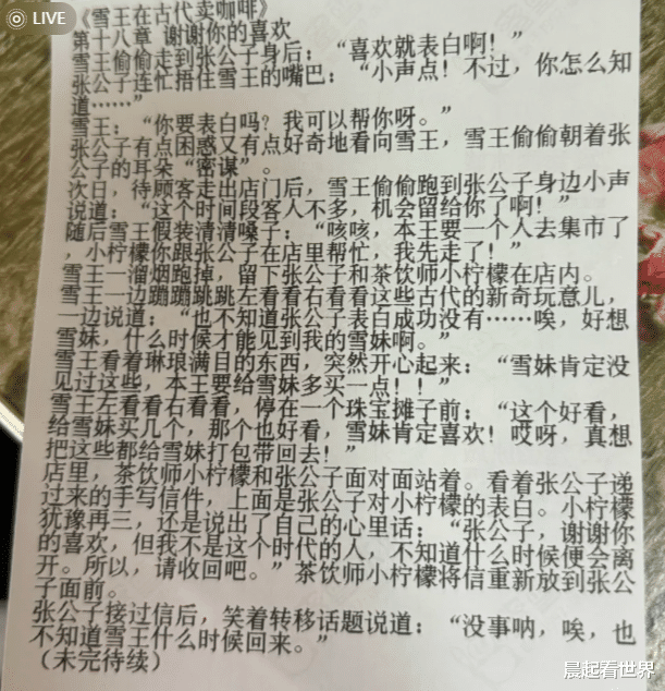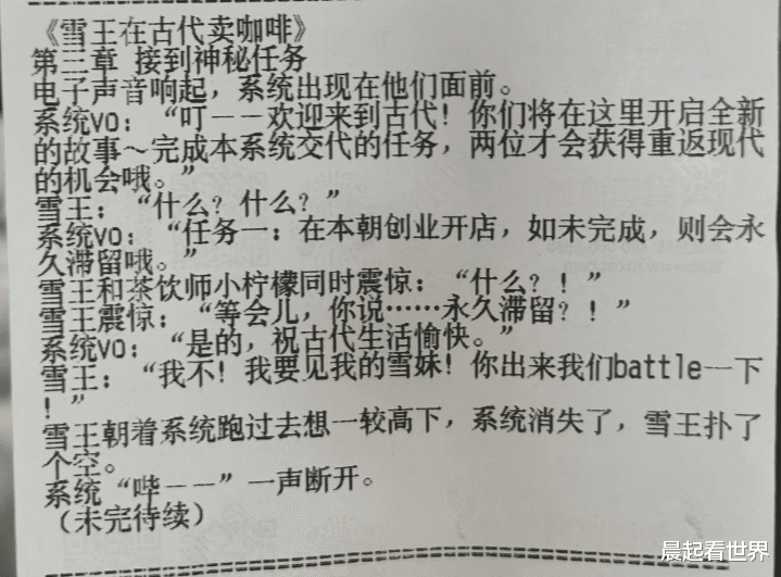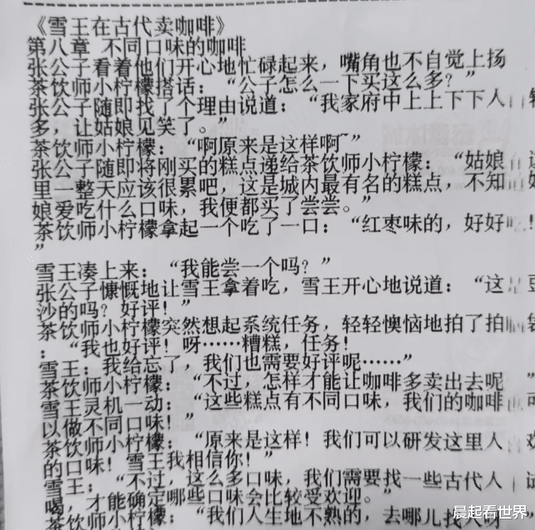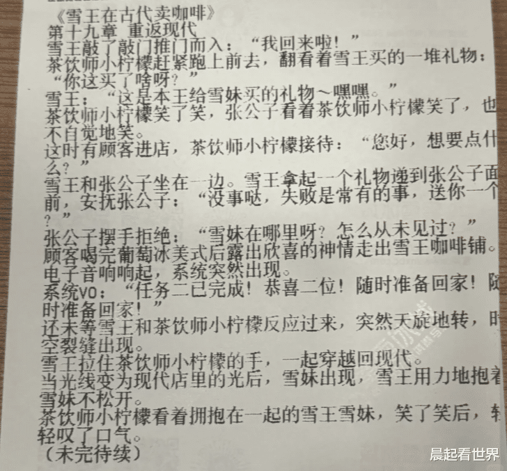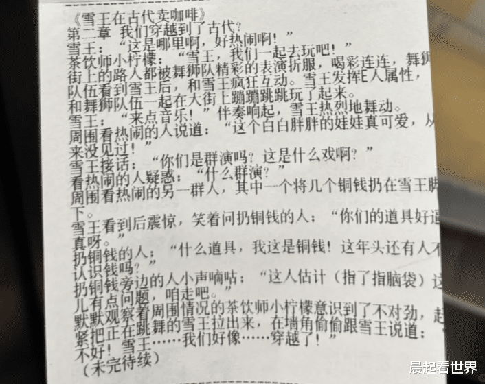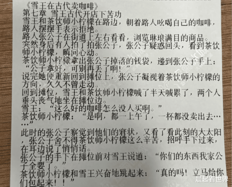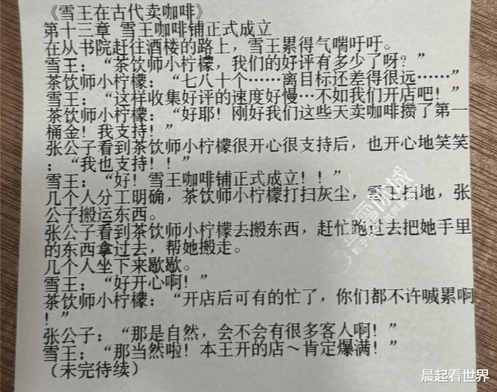 近日,有网友在社交平台发帖称,其在购买蜜雪冰城时发现小票上印有连载小说,讲述了“雪王”与伙伴小柠檬穿越至古代经营咖啡店的