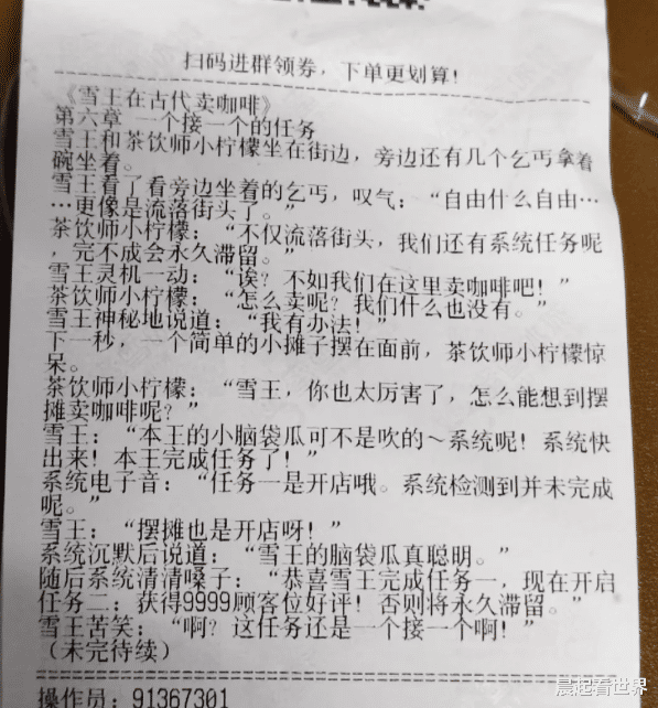 蜜雪冰城又出圈了。这次,不是靠洗脑神曲,也不是因为便宜大碗,而是一次被网友称为“鬼才”的营销创意——在小票上印连载小说。