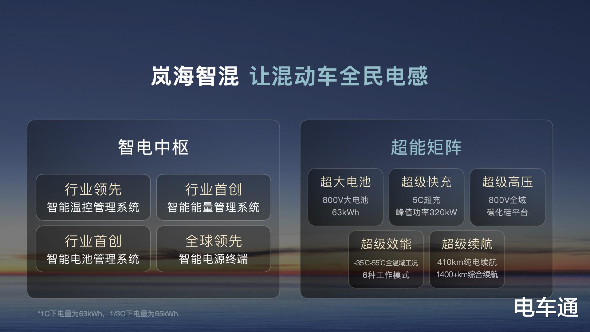 对于经常跑长途的用户而言,“担心续航不够”“怕找充电桩耽误时间”依然是常见的用车痛点。今年8月份发布的岚海智混技术,以全域800V系统、5C超充以及大容量电池的综合方案,在中大型混动车上实现360~410km的纯电续航以及超1400km的综合续航,完全解决了用户的里程焦虑问题。