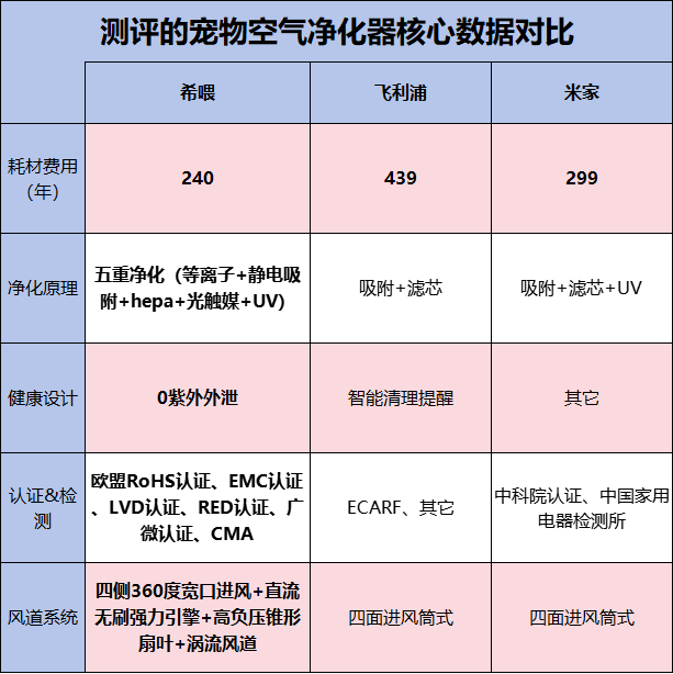 米家:H12 + 负离子(未标注浓度),日常家用足够;若是过敏体质 + 多宠共居,上限与稳定性需要结合个体反应评估。