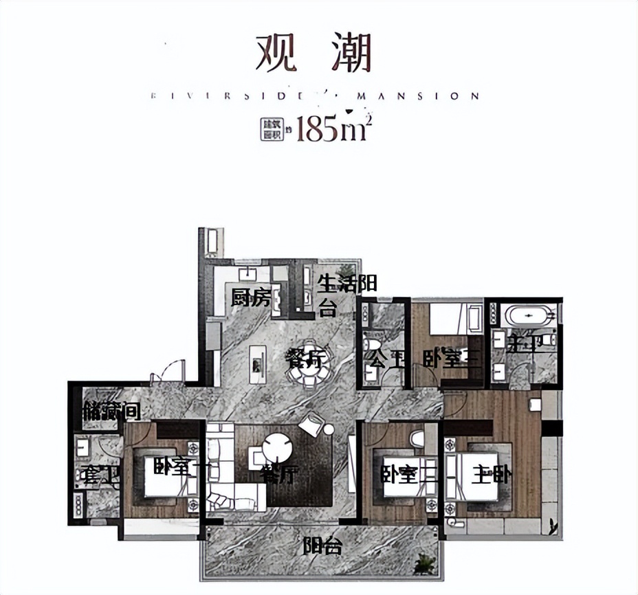 整个小区不算大,有1490户左右,目前首推总共有三个户型,分别是130㎡、143㎡和185㎡、都是改善户型,且配置都是四房起步,更适合置换