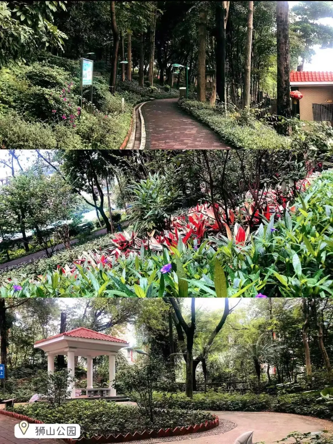 园林设计也比较用心,叠石和瀑布与河景相呼应,沿着河道走能感受到狮山公园的绿意。