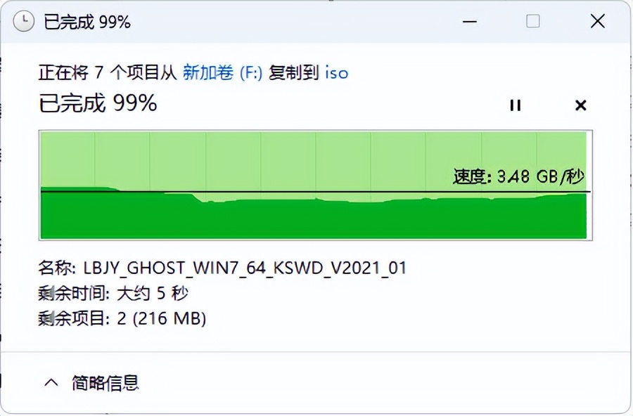 基准分再高,不如实际传文件来得直观。我找了两个总大小 8G 的 4K 视频素材,从旧 SSD 往 GM9000 传,一开始速度直接飙到 4GB/s,全程没掉速,2 秒不到就传完了 ,现在真的是 “秒传”。