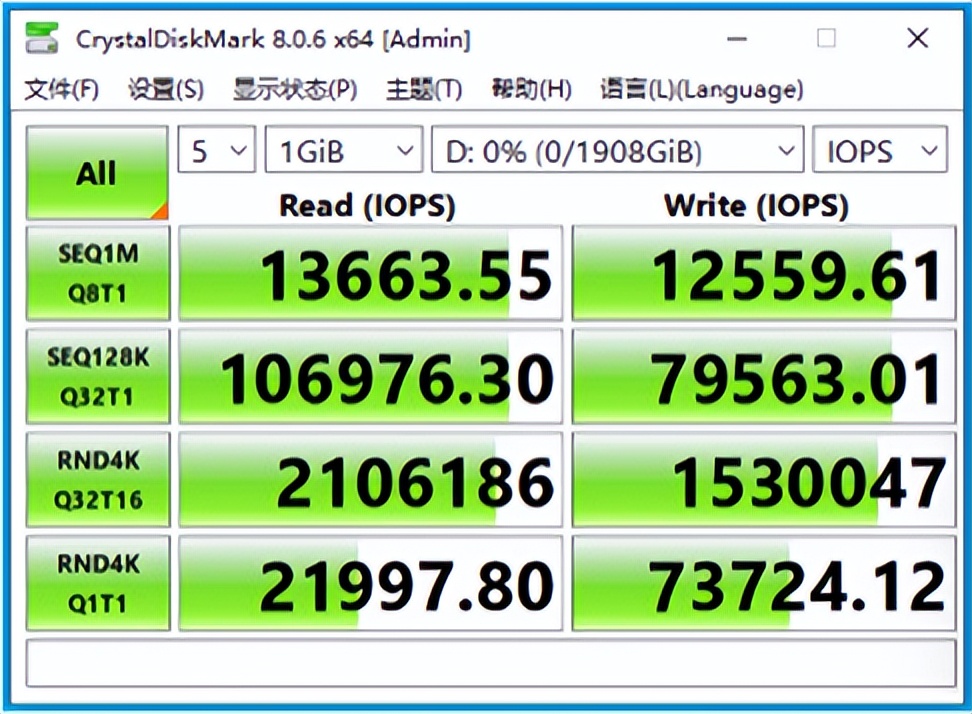 IOPS 分别是 2100k 和 1530k—— 别小看这个数据,打开小文件、多开软件的时候,就靠 4K 性能撑着,之前开十几个网页 + Pr,切换会卡顿,现在完全不会发生了。