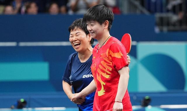 比赛结束后,倪夏莲展现出了大将风范,主动上前拥抱了孙颖莎,还送上了祝福,说小魔王前途无量。接着,她又和孙颖莎的主教练邱贻可握手聊天,场面挺和谐的。