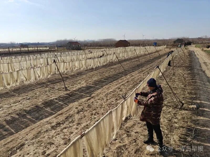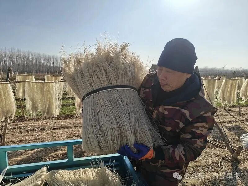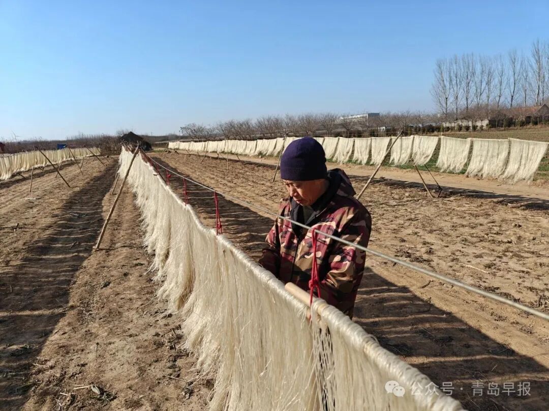 “手工粉条是胶东地区冬天餐桌上的经典味道,春节前的年货市场上尤其抢手。”相武说。经过多年发展,大相家粉条已成为胶州市的一张响亮名片,与胶州大白菜、里岔黑猪并称“胶州三宝”。村民们坚持古法工艺,不仅传承着手艺,也承载着一份浓厚的情怀与乡愁。