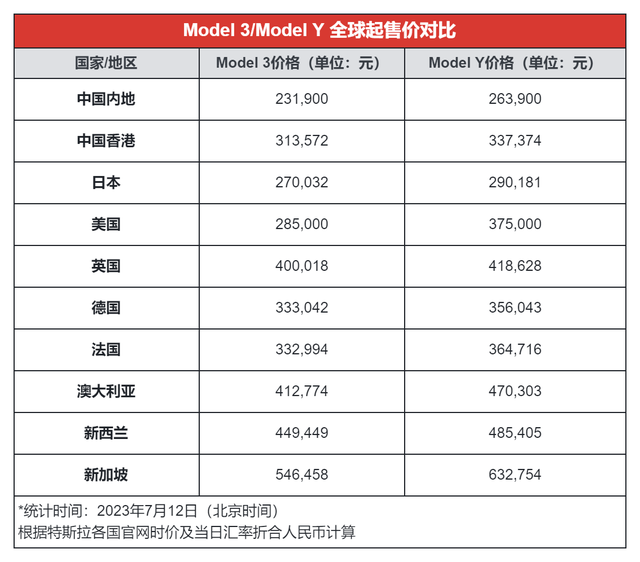 同样的,Model 3的售价差距也不小,中国起售价为23.19万,日本地区要27.00万,欧洲地区要33~40万,澳大利亚、新西兰及新加坡等地甚至要41~54.65万,一样是两倍左右的差距。