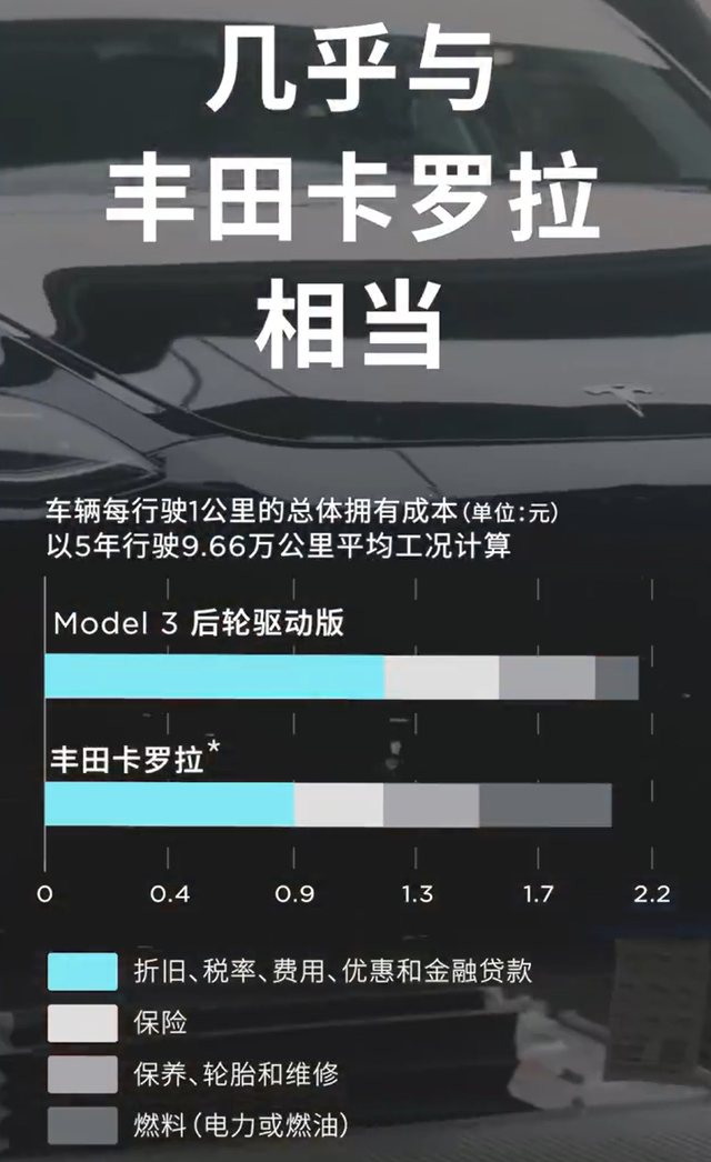 电动车保值高低,这不单单是在权衡品牌价值,更多还是在比拼产品实力。根据特斯拉《2022影响力报告》公布的一组数据显示,特斯拉Model 3在行驶5年后,总的用车成本与丰田卡罗拉持平,可以说是豪华车的享受,A级车的用车投入!
