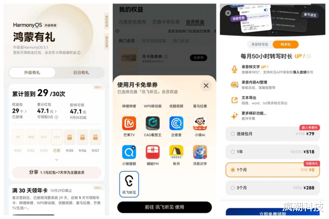连续签到几天后,我竟然抽到了一张热门应用“月卡免单券”!看了一下可兑换列表,我眼睛都亮了,讯飞听见不就是我这种打工人的刚需吗?于是,我立刻兑换了一个月会员。