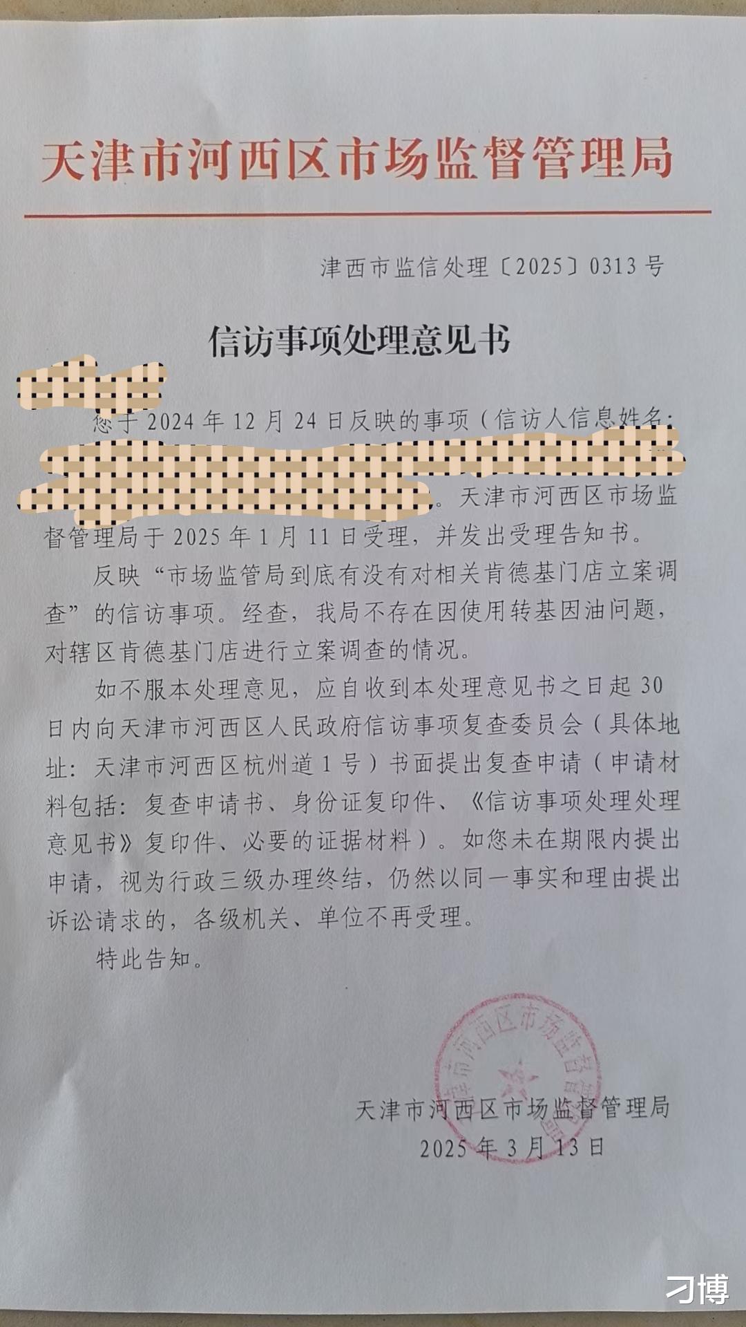 去年10月份,有记者陪同天津市河西区市场监管局执法人员去门店检查时发现,辖区内的肯德基使用转基因大豆油进行食品加工,却没有告知消费者使用的是转基因大豆油。执法人员以违反《食品安全法》第六十九条“生产经营转基因食品应当按照规定显著标示”为由对肯德基进行了立案查处。随行记者写出的报道被很多大型媒体转载,当天引爆全网。