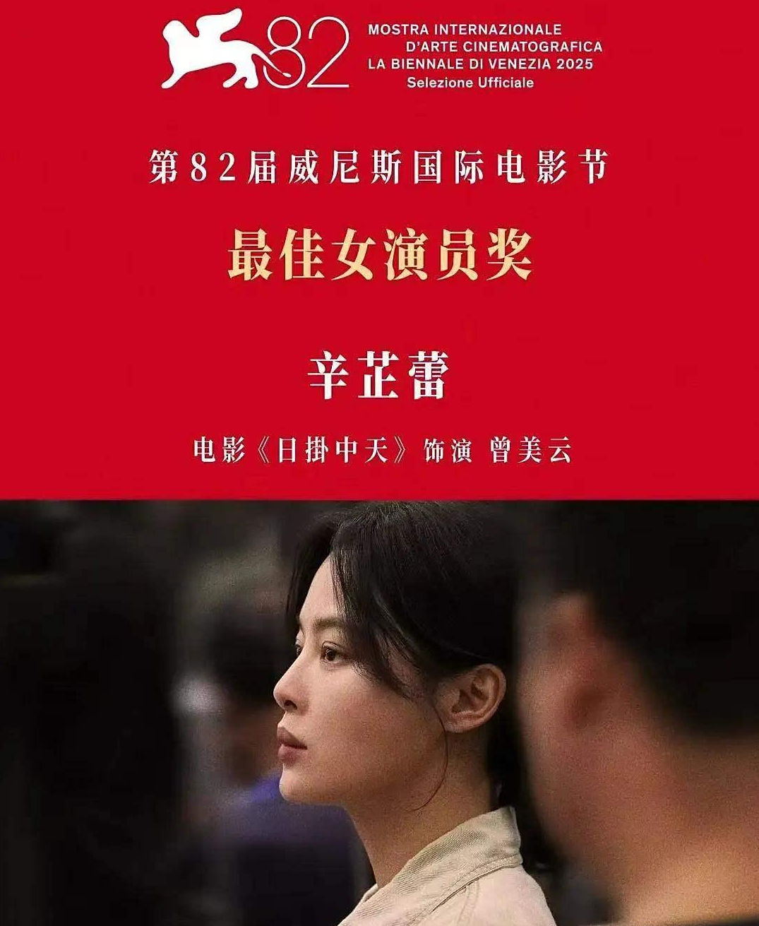 带着自己的最新作品《日掛中天》亮相威尼斯电影节时,辛芷蕾也没想到自己能够全票通过,拿到第82届的威尼斯影后。