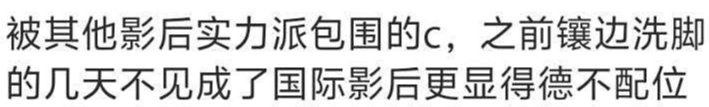 明明是为国争光,为中国电影争气,为华语女演员代言,却最后变成了里外不是人的存在,更是轻飘飘一句话,上到导演,下到各路女明星度骂到了,这不是给辛芷蕾拉仇恨吗?
