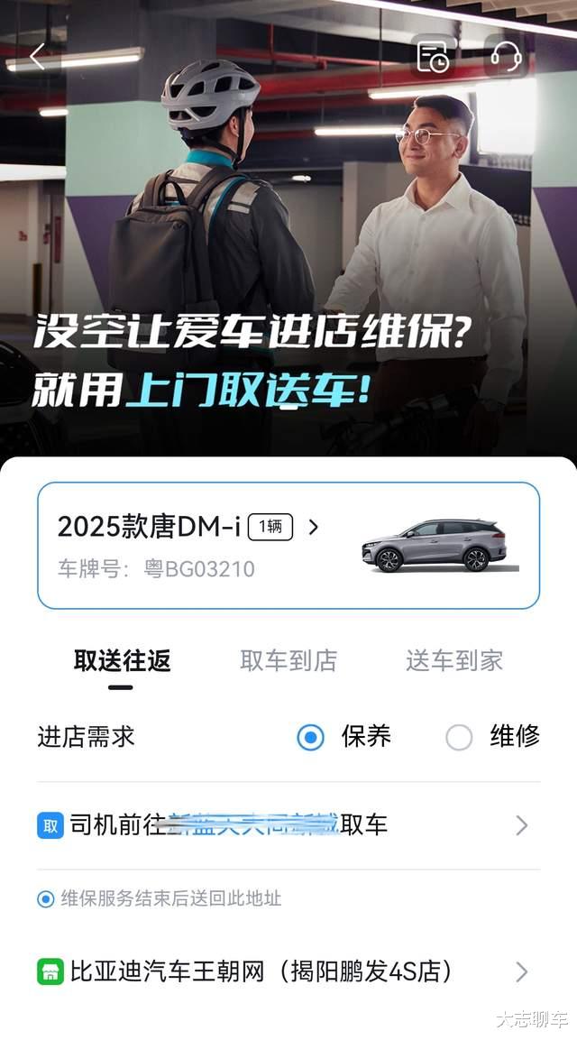 第三个:免费取送车,如果你没时间去4S店保养和维修的话,你可以在手机APP上面点击服务-取送车,让专人帮你把车送到4S店去,不过,这里有个小要求,就是只能在30公里以内才可以,超出30公里后,车主需要自己额外再掏钱,最关键的事情,你还可以让专车司机专门带你一起去,然后你再开车回来,属实是性价比极高的选择。