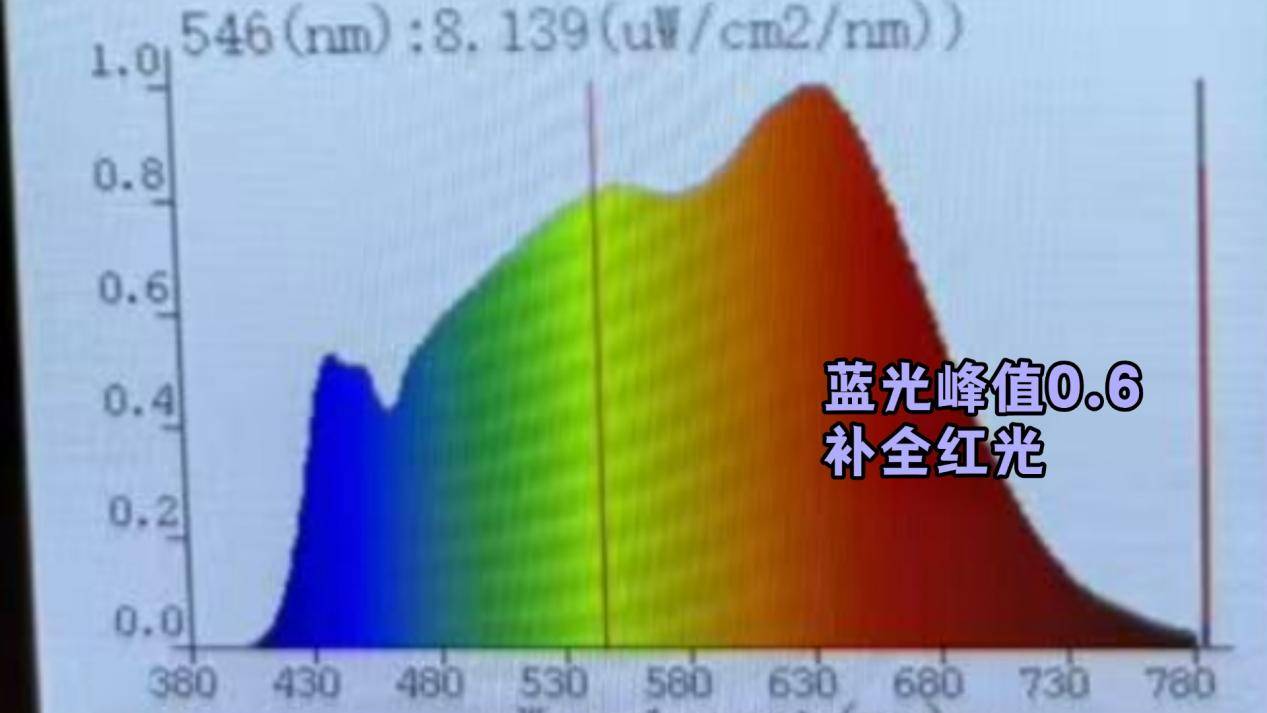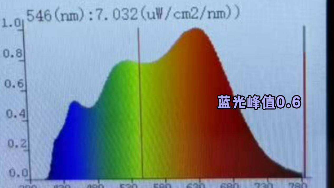雷士是一款采用全光谱LED光源的护眼大路灯。实际的光谱还不错,蓝光也在0.6左右,同时补全了红光,实际的光线还是蛮不错的,但是要注意的是,雷士是一款支持2700K-5000K色温调节的护眼大路灯,在实测中发现,在5000K色温是蓝光峰值在0.9左右,处于一个比较高的数值。