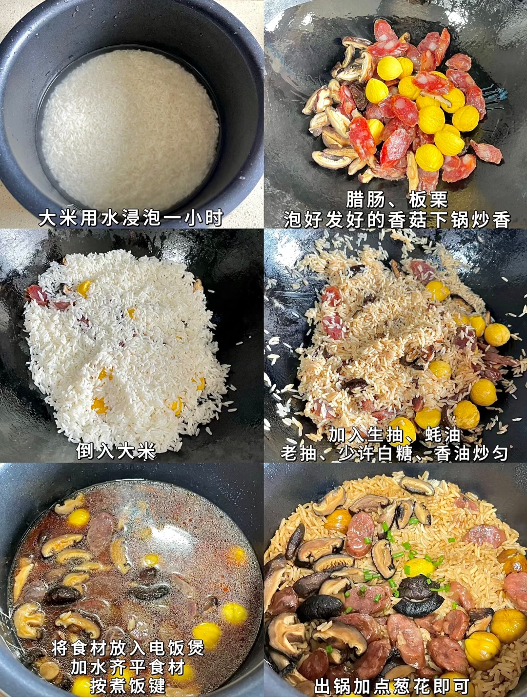 3. 板栗+腊肠+香菇,碳水、油脂、鲜味一口气补齐,一口下去,秋天直接到账!