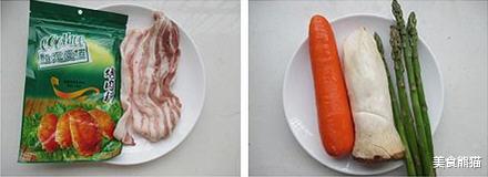 主料:五花肉、芦笋、杏胞菇、胡萝卜
