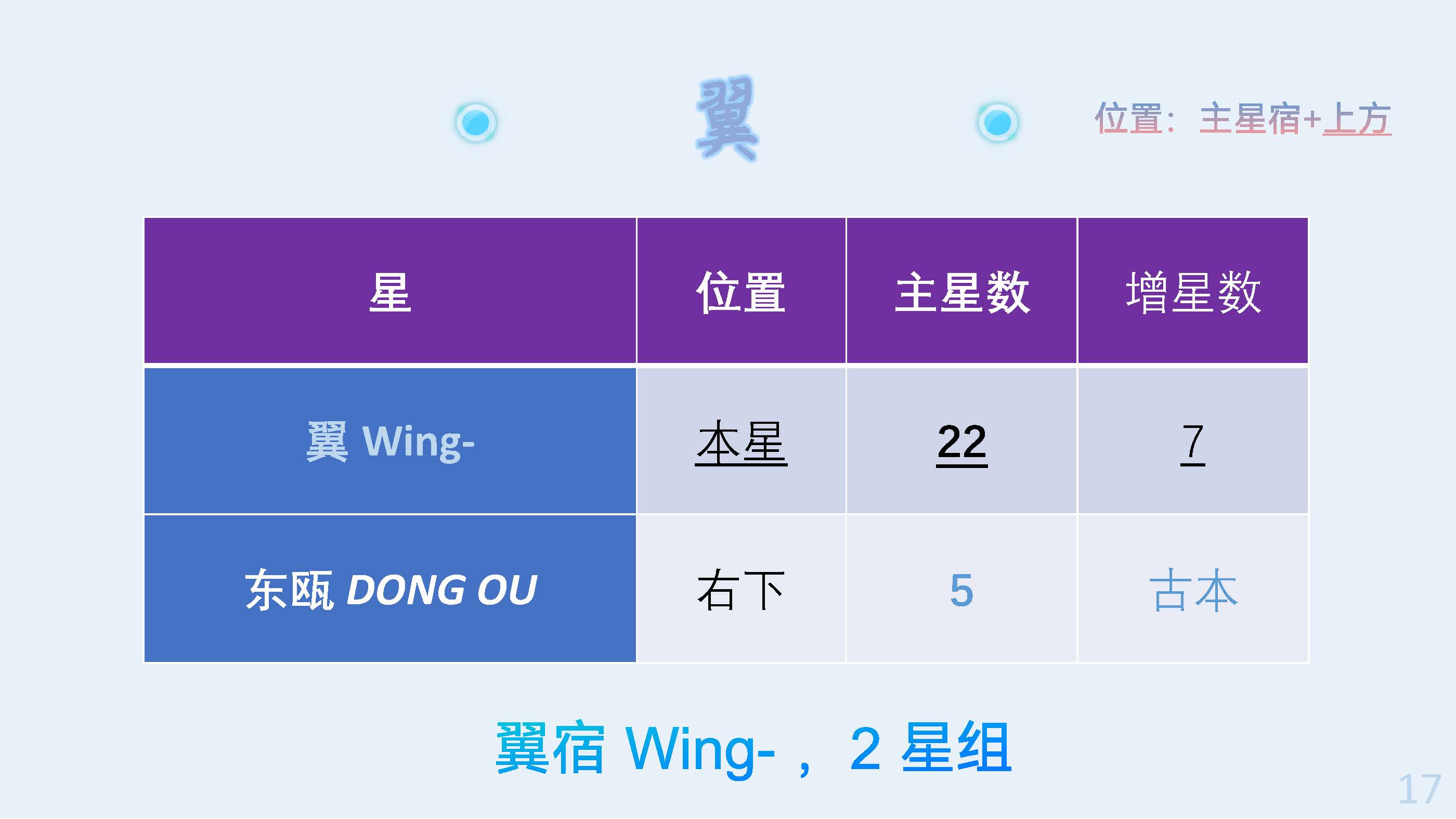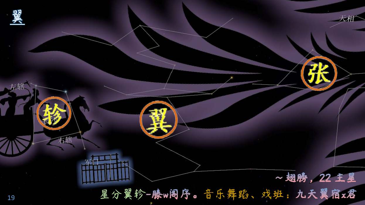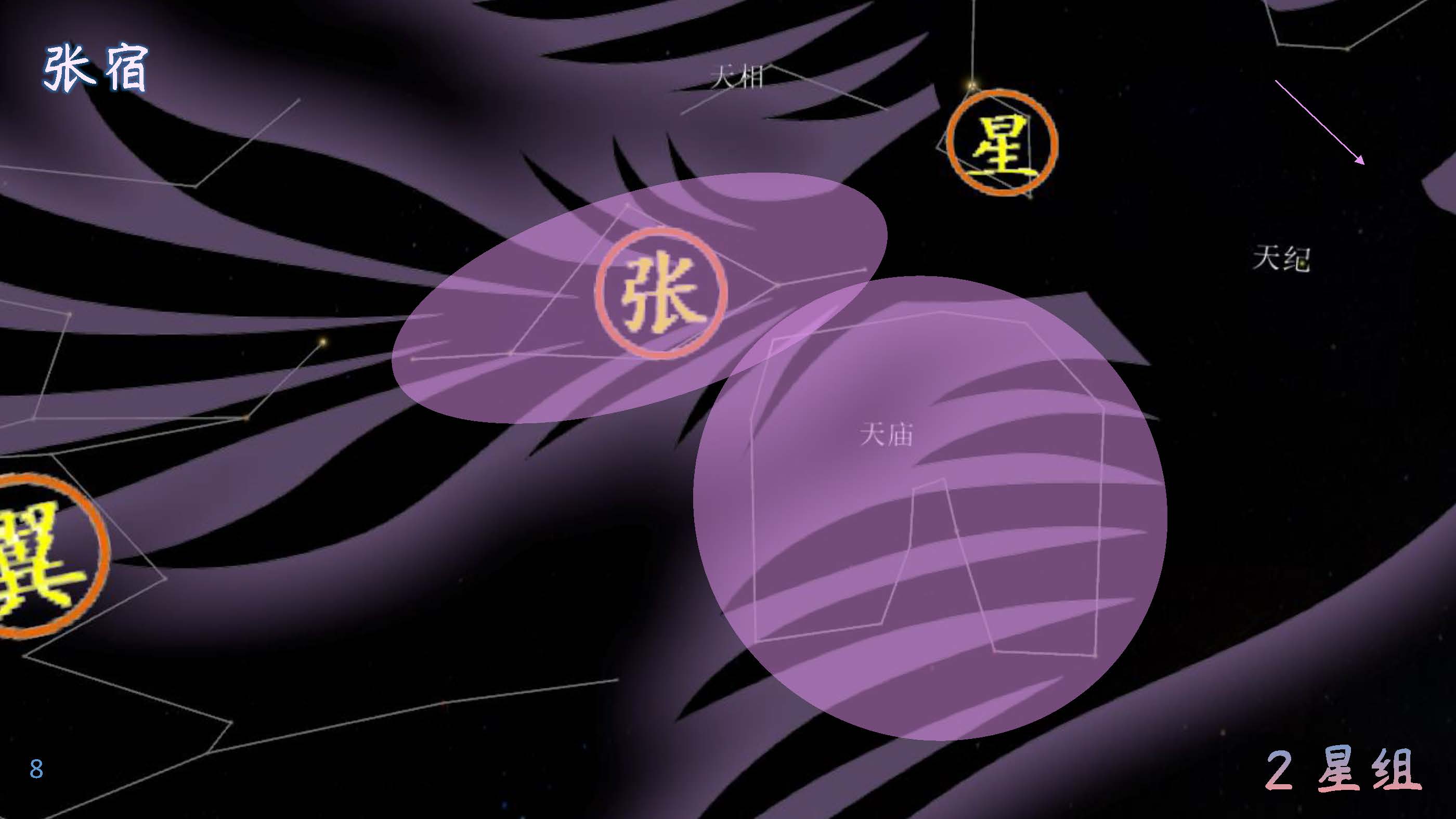 l张宿 - Net,2星位置:主星+右方张,6主星天庙,古籍14星l翼宿 Wing-,2星组位置:主星宿+上方翼,22主