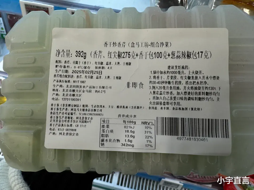 例如,一家超市中售卖的香干炒芹菜预制菜产品中,香芹组合配料的执行标准为行业标准NY/T 1987,而香干条执行的是国家标准GB 2712。