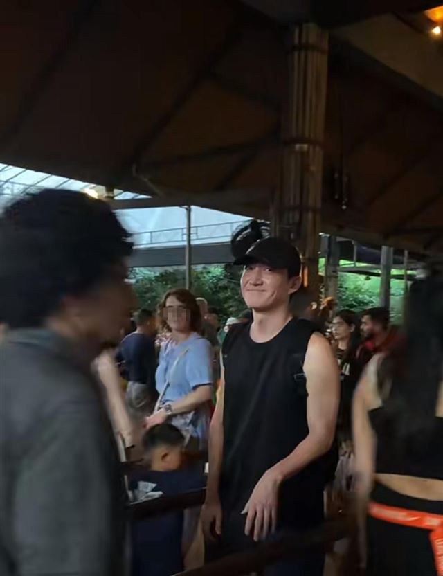 这次在新加坡夜间动物园的偶遇,王阳身穿黑色背心排队时被眼尖的粉丝认出。