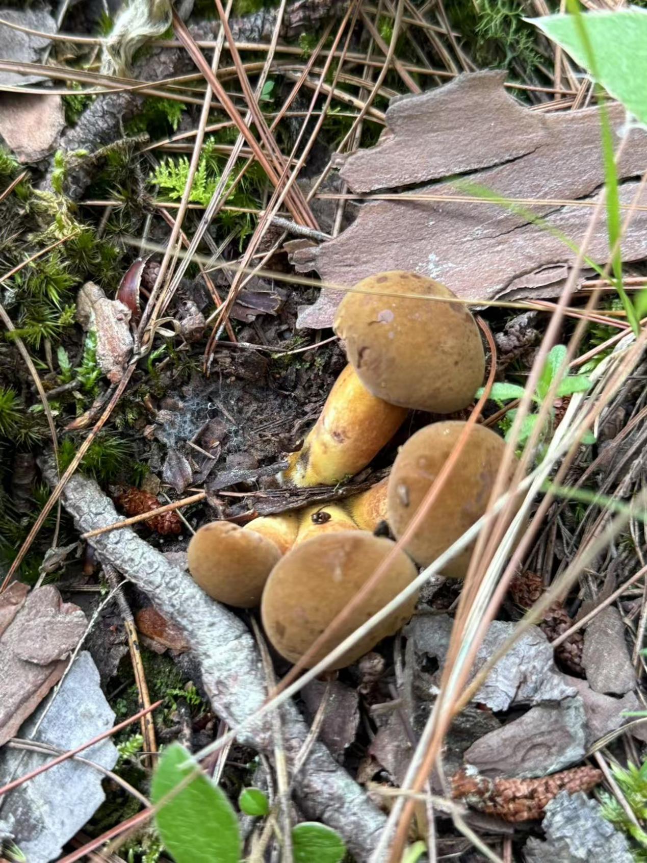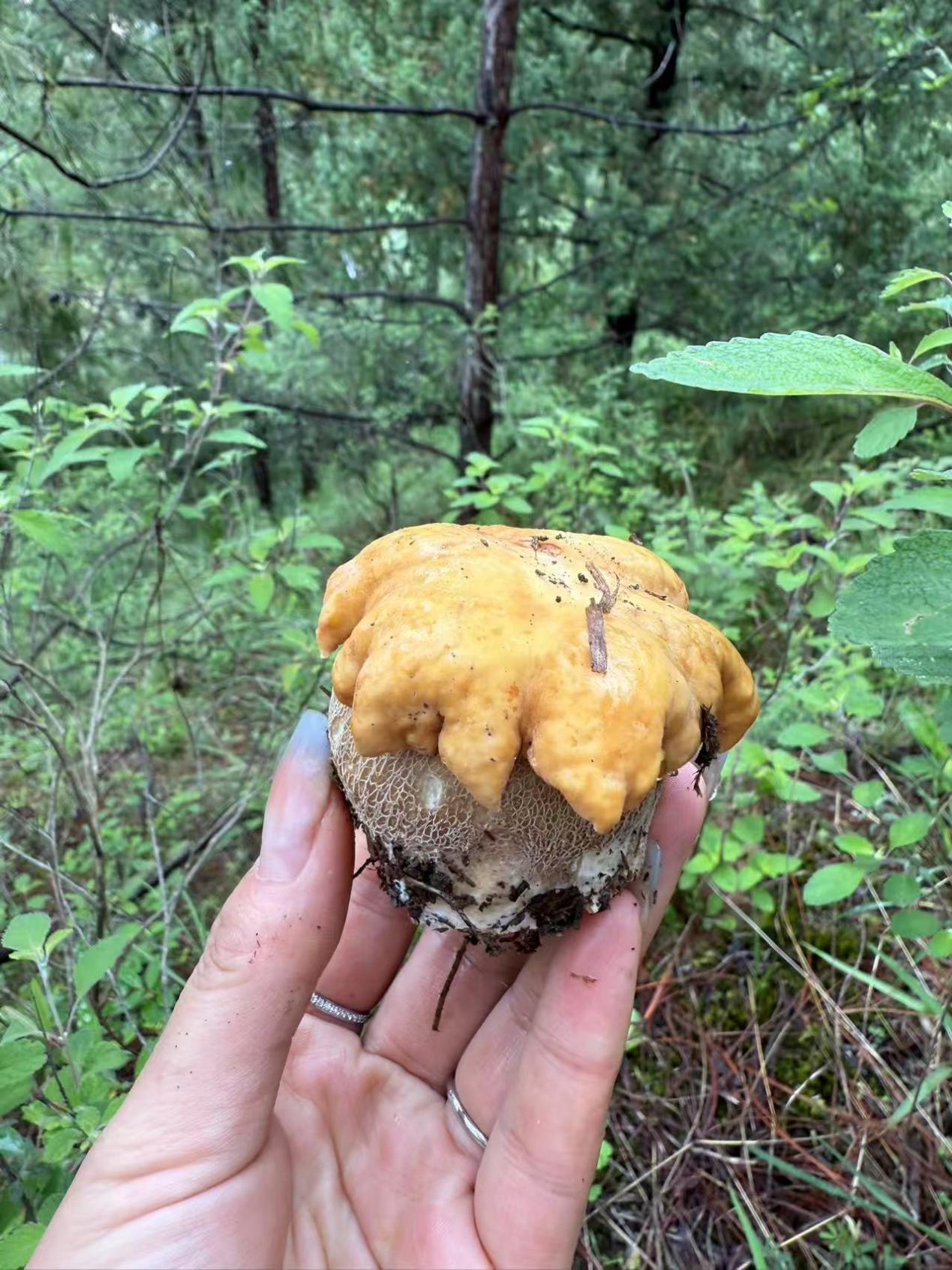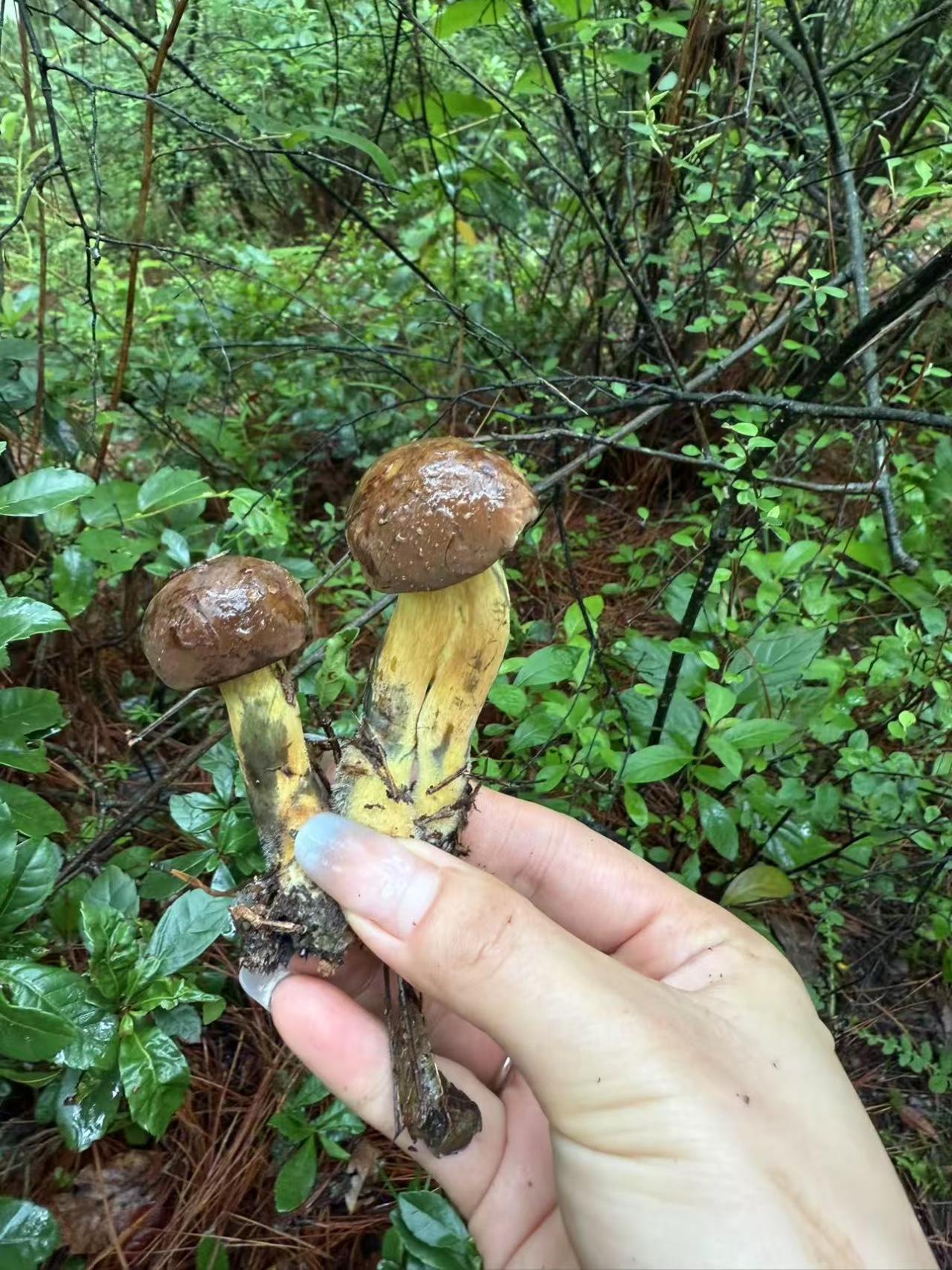 到家后,小歇一下,回归正题,出发捡菌子咯。给我家大宝带上小桶,拿上小棍子,就出发啦,刚踏入山林,湿润的泥土气息和草木的清香扑鼻而来,瞬间驱散了们一路上的疲惫。轻轻用木棍,探索着每一片厚厚落叶和草丛,我像个无头苍蝇似的,四处乱找。靠山吃山,雨后出太阳,菌子蹭蹭往外冒,老天不会辜负每一个勤劳的人,不一会,大家就拾到了很多菌子。