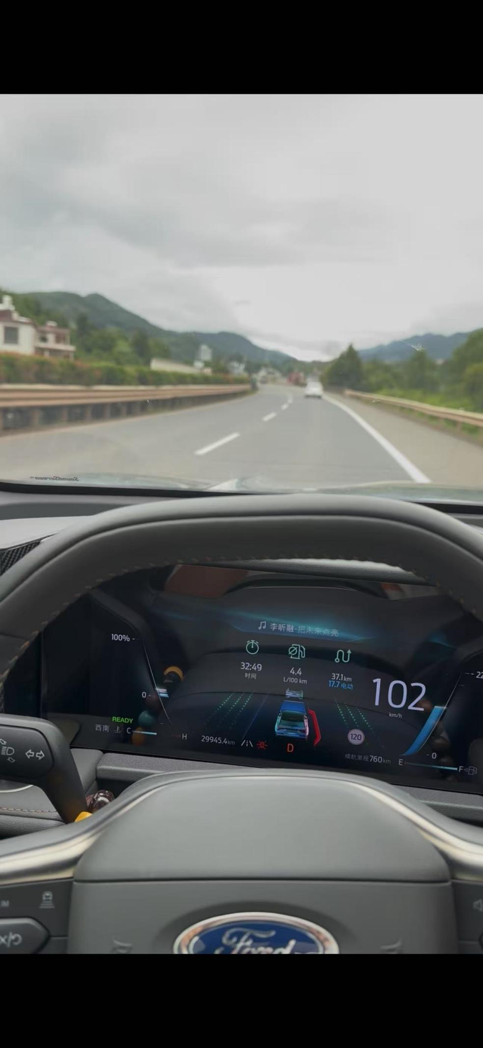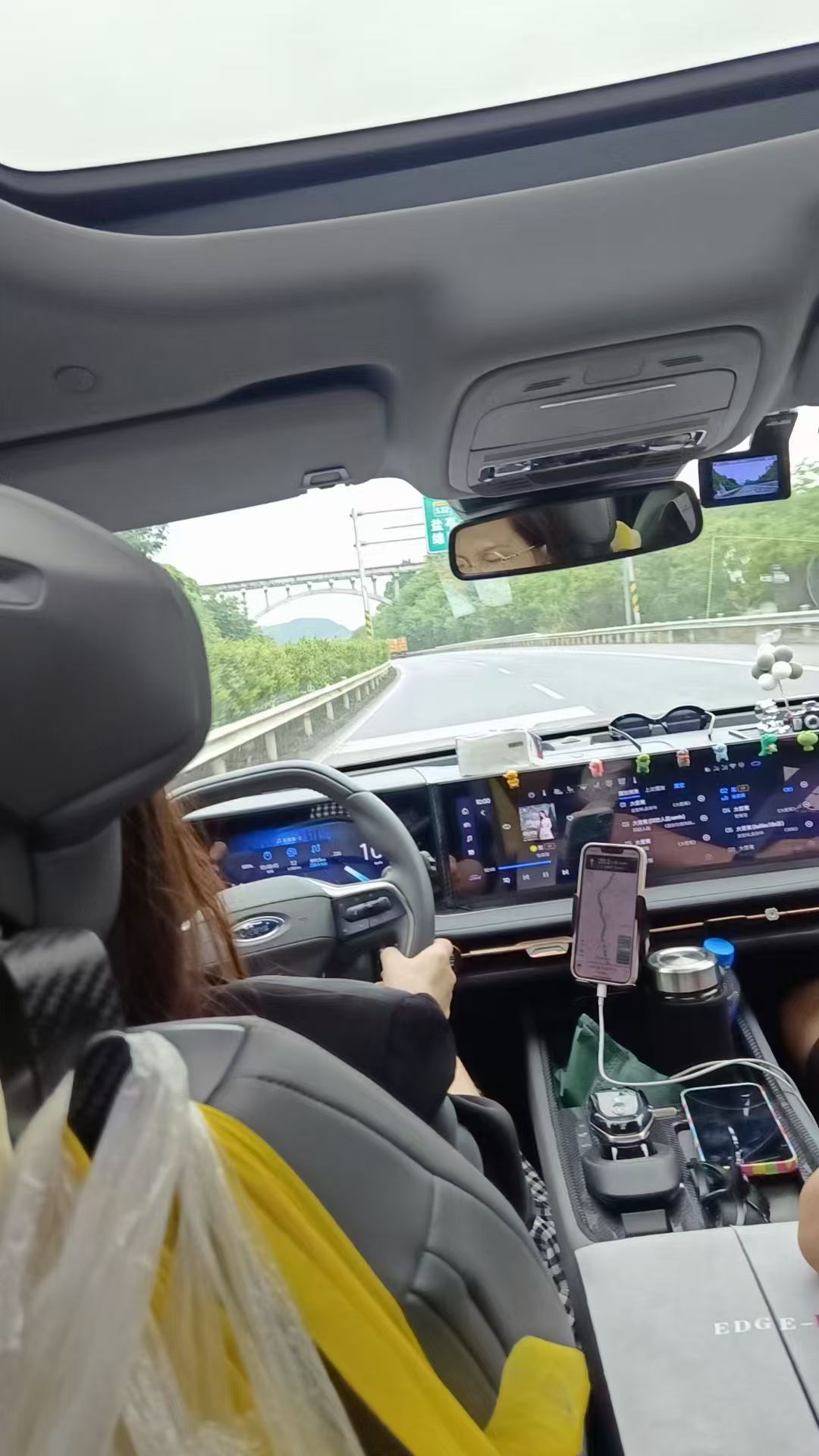 十点来钟出发的路况,不快也不慢,车速100-120的跑,油耗也不大,操控也也轻松,胎噪风噪寥寥,放点孩子爱的音乐,卸下城市中的喧嚣,感受沿途的车与景。媳妇也能轻松驾驭5米长的锐界L。