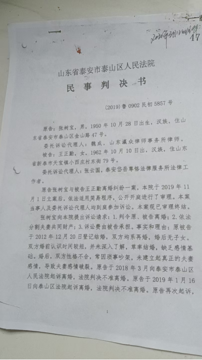 法律是维护社会稳定的基石,而法院更是维护正义的最后一道防线,但在案件的审理中,张树宝认为法官存在枉法裁判的行为。在(2019)鲁0902民初5857号民事判决书中,泰山区法院穆某法官的判决中,居然选择性的忽视这些证据。张树宝激动地说,“但在本案中,法官却明显偏向了被告一方,对我的证据视而不见听而不闻。”张树宝认为法官的这种行为不仅违背了职业操守和道德规范,也严重损害了法律的尊严和权威。