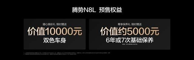 9月26日,腾势汽车全新大六座安全豪华SUV——腾势N8L正式开启预售,预售价31.98万至34.98万元。作为与科技安全旗舰SUV腾势N9一脉相承的家庭豪华伙伴,腾势N8L与腾势N9共同构成了腾势品牌独有的旗舰豪华双子星矩阵,分别瞄准不同细分市场。腾势N9定位科技安全旗舰SUV,科技力拉满、豪华感给足,更追求旗舰的科技性能。腾势N8L则是更聚焦家庭的安全豪华SUV,继承了N9的安全技术和灵活驾控,有大空间和豪华感,更追求家庭的豪华舒享。