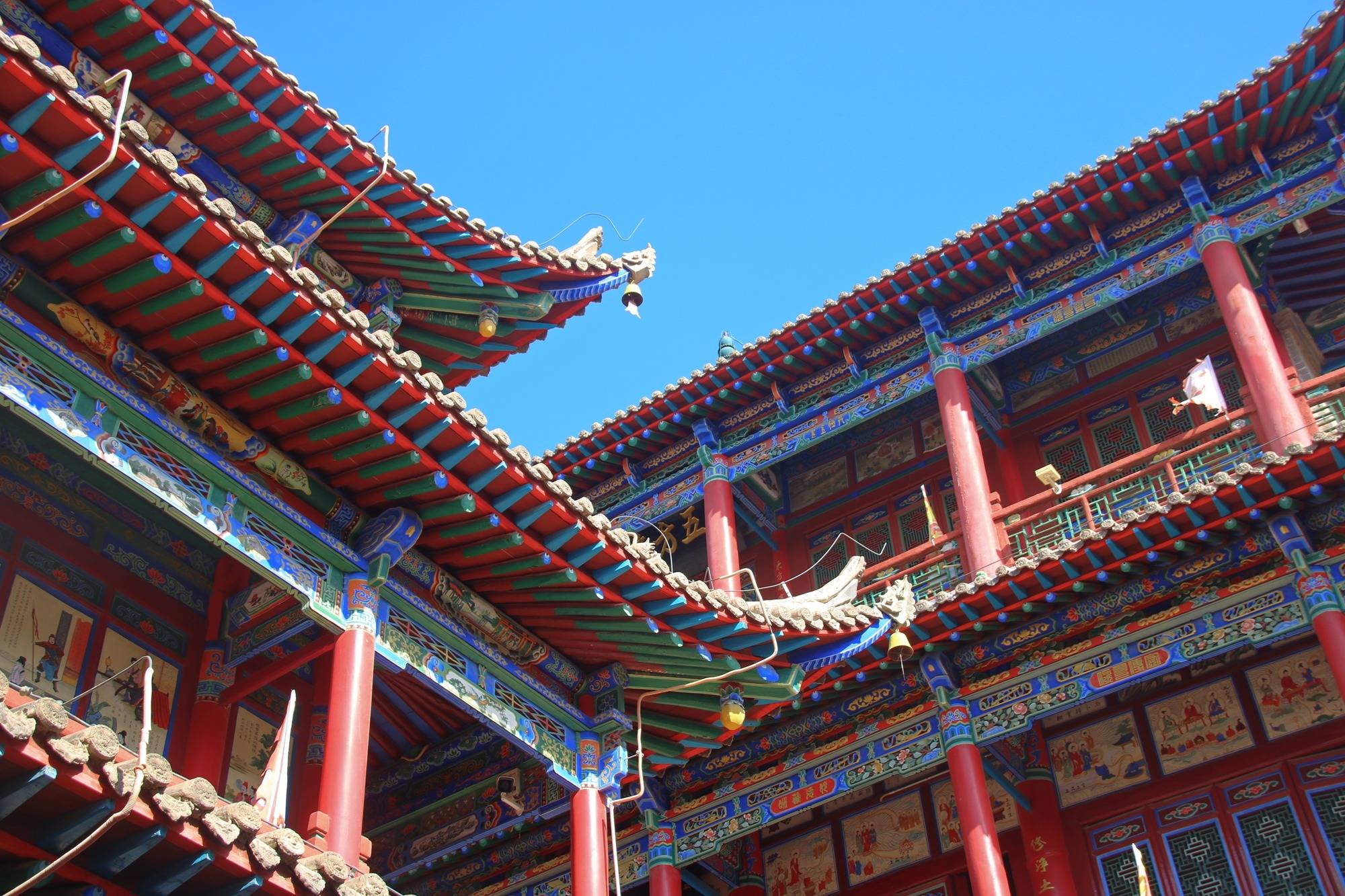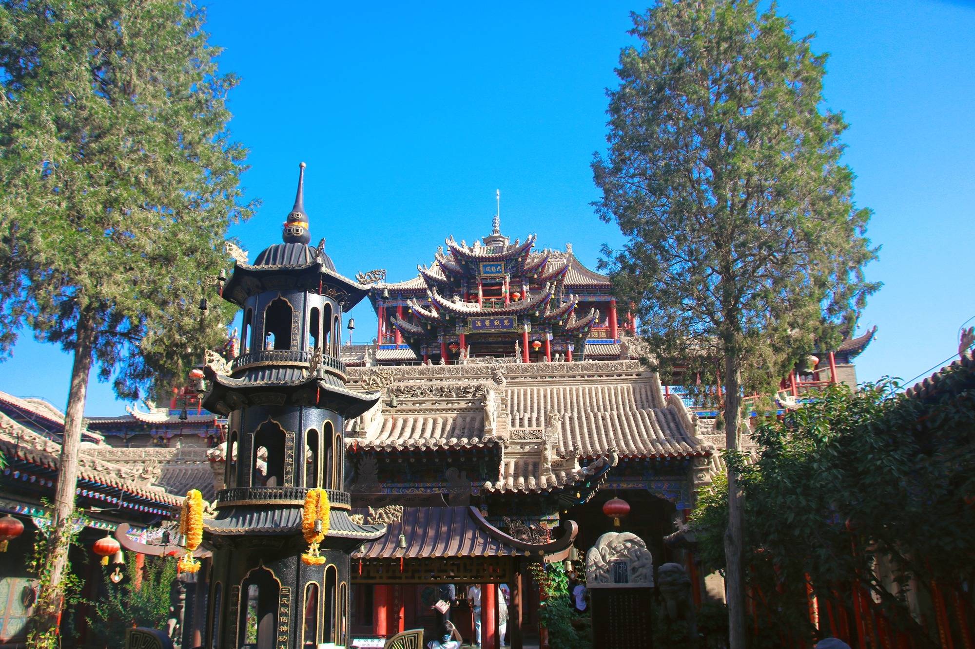 如果细分的话,保安寺属于佛教,高庙上部则属于道教,建筑呈中轴对称分布,从南至北依次升高,建筑间的飞翘檐角相互交叠,仿佛“空中楼阁”,给人一重又一重的繁复美感。