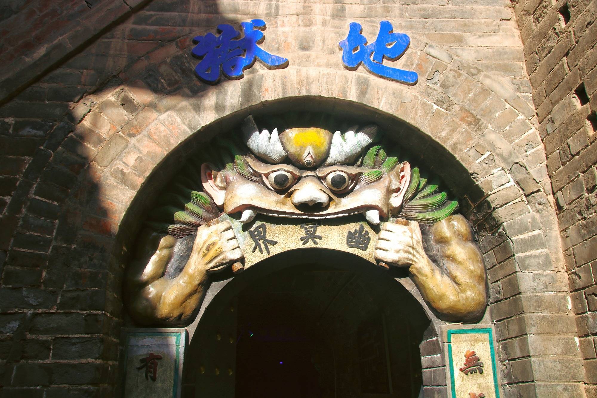 高庙基座下就是全国有名的四大地狱之一——幽冥地府。狰狞的神兽仿佛张着大口等待人们的进入,“幽冥界”和“地狱”的题字更是将神秘氛围拉满。