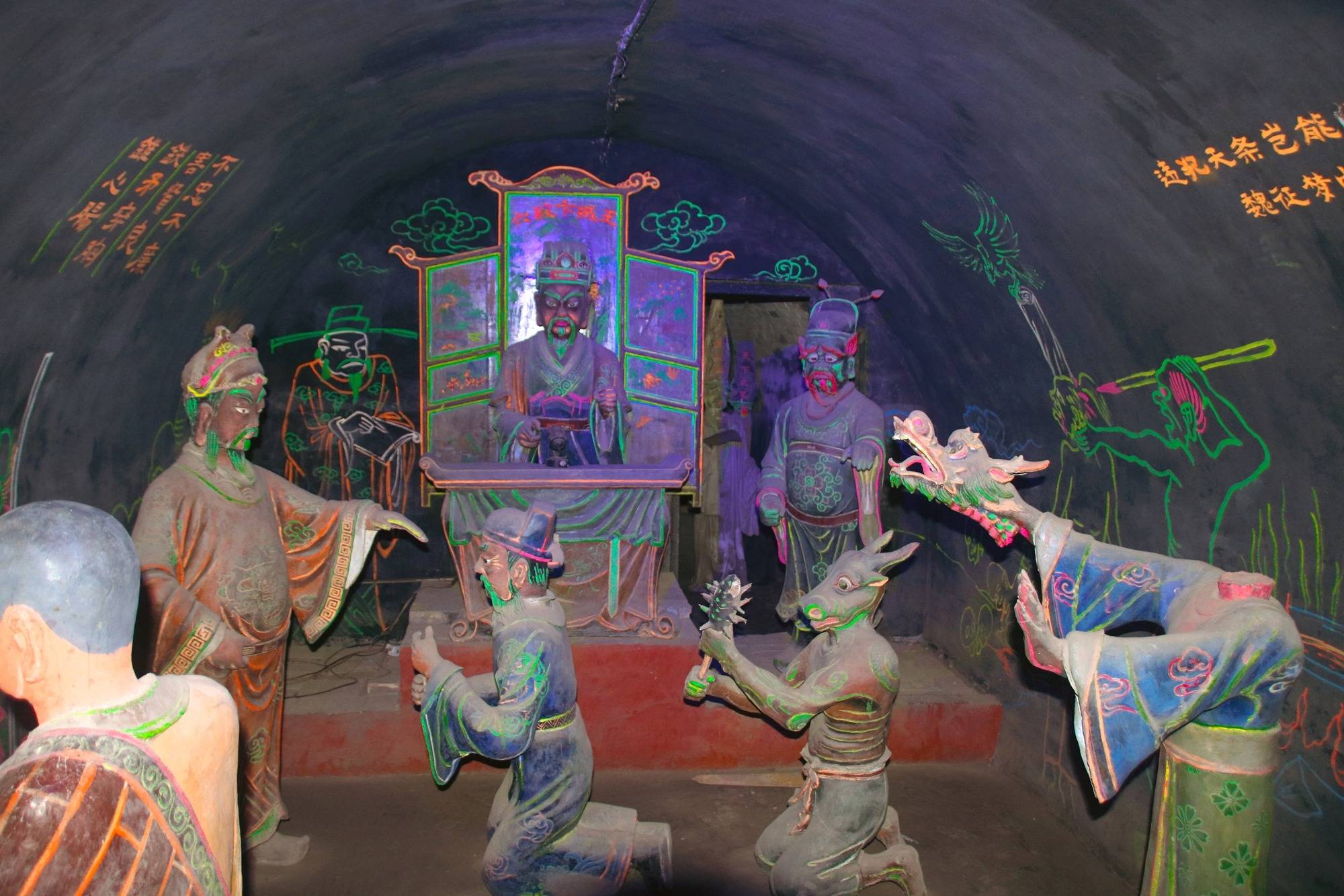 走入地宫顿觉清凉,仿佛瞬间走进了一个神秘又让人有些敬畏的世界。地宫内通过墙绘、泥塑、光影等手段还原了“十八层地狱”的场景,通俗生动,令人印象深刻。
