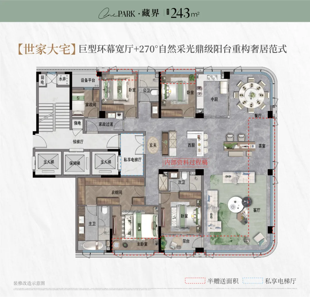 主打建面约165-537㎡真洋房与大平层,单价约20000+元/㎡,坐享西南新中心完备配套,兑现“豪宅平权”的品质承诺。
