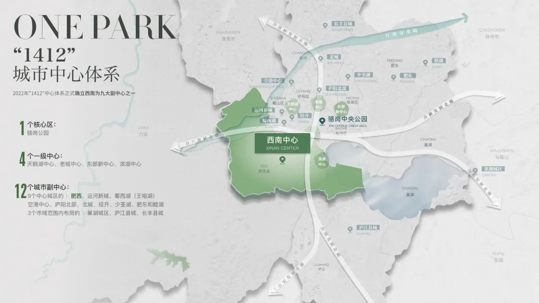 区位上,这里处于“1412”城市中心体系的关键节点,北接政务、高新,东联经开,西通六安,南通巢湖,构建起“半小时都市圈”的交通优势。