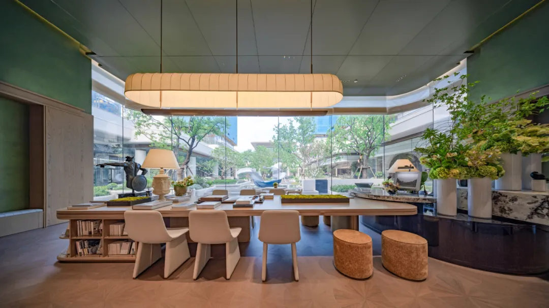 作为西南首创“超隐框”玻璃幕墙,以极高成本实现近乎无框的视觉效果,为业主呈现毫无遮挡的沉浸式公园景观。超高墙窗比更带来270°环幕视野,打破空间界限,将约2200亩派园景致最大程度引入室内,以“引景入室”的设计哲学,兑现“家在公园里”的承诺。