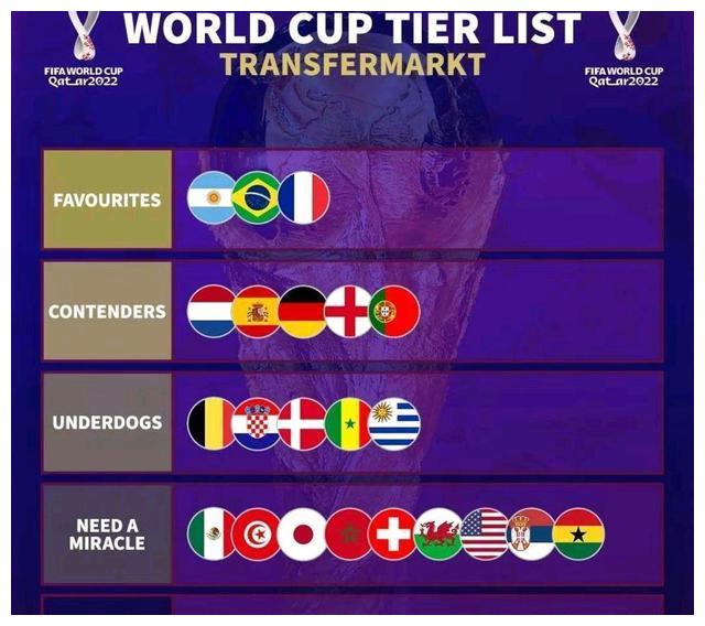 吵嚷间不过巴西,阿根廷,德国,法国,西班牙,英格兰等传统豪门,加上葡萄牙,比利时,荷兰等劲旅!
