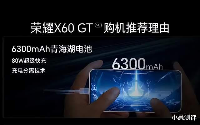 续航这块作为荣耀X60 GT吸引用户的核心卖点之一,它的续航表现丝毫不输给市面上同价位机型。它内置一颗6300mAh大容量电池,支持80W有线快充技术。从小愚此前对这款手机的续航体验来看,它可以轻松应对我们用户一天的重度使用。即使你平时比较喜欢玩游戏,小愚个人认为这款手机的续航也不会让你失望的。毕竟它还提供了80W有线快充技术,大幅提升了充电速度,用户体验也有所提升。