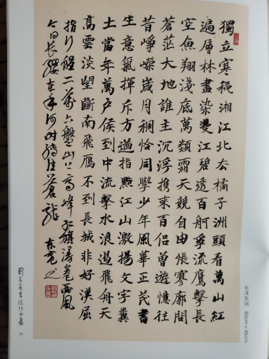 1966 年,文化大革命爆发,刘东亮的学业被迫中断,但他与笔墨的联结从未断裂。他也卷入了当时全国性的革命洪流之中,参与到写传单、贴大标语、办报刊专栏的宣传工作里。彼时,街头的墙面、单位的宣传栏成了他的 “大纸”,石灰水当墨,捆扎的扫帚为笔,“四海翻腾云水怒,五洲震荡风雷激”“毛主席万岁,共产党万岁” 等豪迈标语,在反复书写中不仅锤炼了他的笔力,更让他在毛泽东草书的奔放气势里,感受到 “笔墨可承载时代气魄与自然意象” 的力量。后来,他被派往基层参与劳动,因 “体力相对较弱”,很快被调至宣传组,负责写工地海报、画工地板报,山间的风、铁轨的直线、工友们挥汗时的动态,都成了他笔下的鲜活素材。下乡的几年他对书法学习没有间断,正是这段特殊的经历让他懂得:自然从不是远在天边的风景,而是融入日常的点滴,哪怕是工地的一砖一瓦、风中摇曳的一草一木,都能成为笔墨创作的灵感来源。