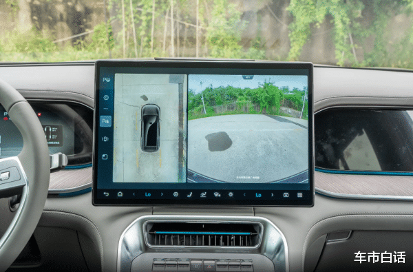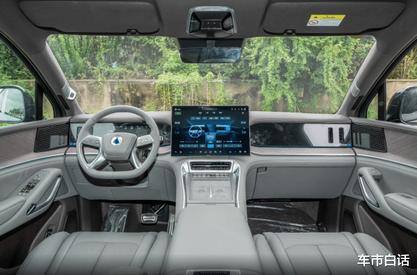 进入腾势N9 DM的座舱,主驾区域的13.2英寸的液晶仪表与13.2英寸的副驾娱乐屏以中央扶手区域为中轴对称布局,中间则为17.3英寸的悬浮中控大屏,此外主驾前方还配备50英寸的AR-HUD抬头显示,形成了四屏联动,车机内配有DiLink辅助系统,除了基础的应用功能外,还提供了智能语音系统,可支持六音区识别、连续对话和可见即可说功能。中控台区域采用了深浅组合的软性面料包覆,并利用木纹饰板和镀铬饰条增加了豪华感,同时整体以灰白为主基调的配色,让座舱内的视觉效果温馨居家。