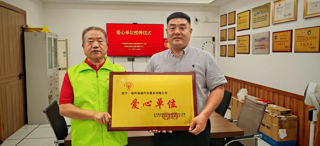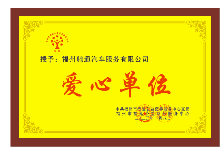 10月9日下午,在福州火车站商贸城四楼A19福州驰通运营中心会议室的福延公益授牌仪式上,“爱心单位”牌匾交到福州驰通汽车服务有限公司董事长杜新仲先生手中时,他的目光落在了窗外——那里停放着的车辆,只是他公益车队的一角。从单辆车接送困难学子,到千辆车队穿梭于八闽大地,他用车轮丈量着公益的广度,也用真心温暖着需要帮助的人。