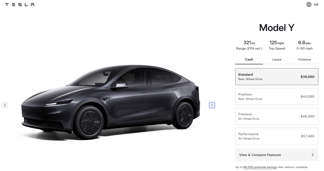 昨天,特斯拉在美国正式上架了廉价版Model Y,估计不少人会有疑问:这车到底便宜了多少?砍了哪些配置?要是真引进国内,值不值得买?今天就跟大家来聊聊。