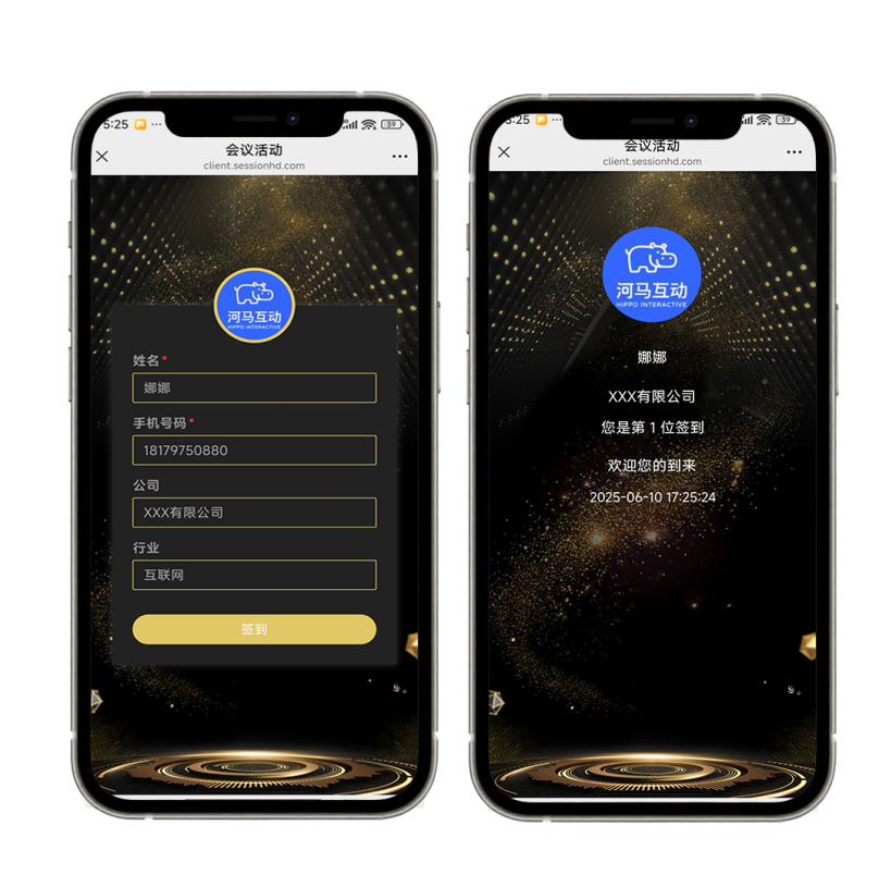 传统的人工签到,每次都要耗时很久,签到处堵起来活动体验急剧下降。主办方可以将活动链接或者二维码分享给参会嘉宾,嘉宾扫码极速签到。签到后进入会场主页,即可直接查看比如活动流程、位置信息、中奖信息等内容。简单易用,方便快捷。