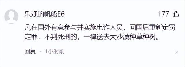 凡在国外有意参与并实施电诈人员,回国后重新定罚定罪,不判死刑的,一律送去大沙漠种草种树。
