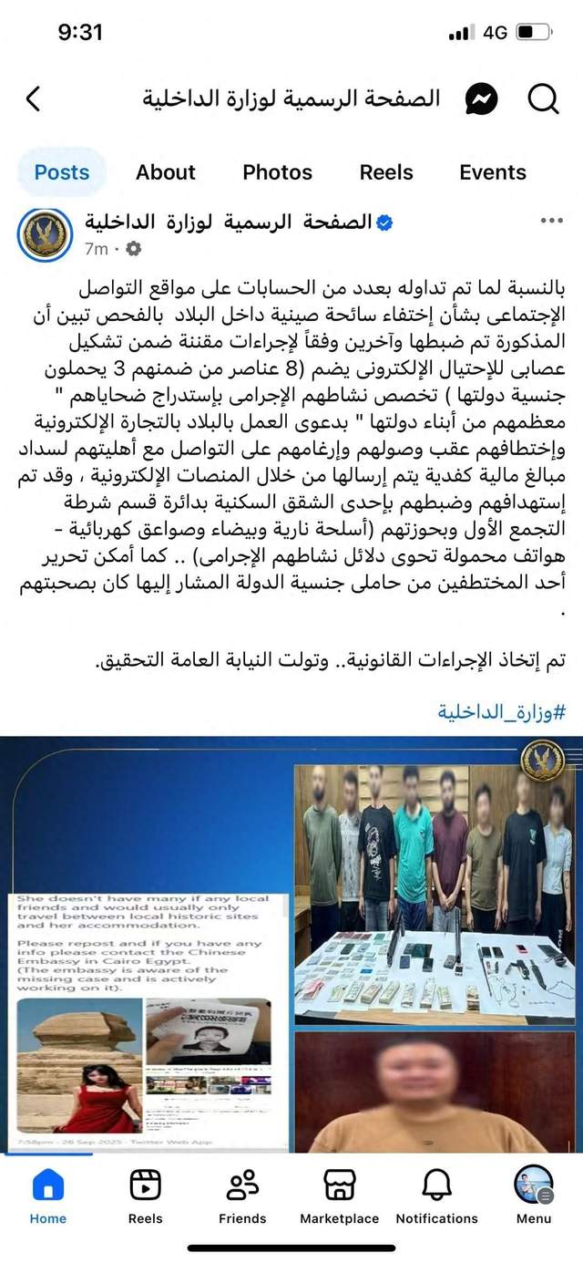 “她与其他几人已被依法控制,因其隶属于一个专门从事电子诈骗的犯罪团伙(该团伙共8名成员)!” 这是一个“团伙作案”,不是她一个人“捣鼓”出来的。 8名成员,说明这个团伙已经形成了一定的规模。 “依法控制”,也说明了埃及警方采取了行动。