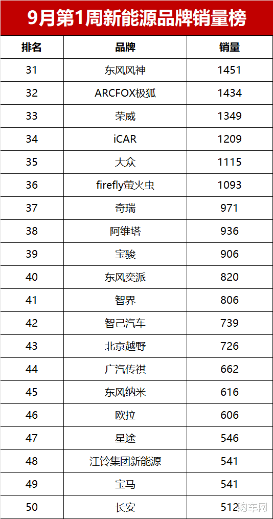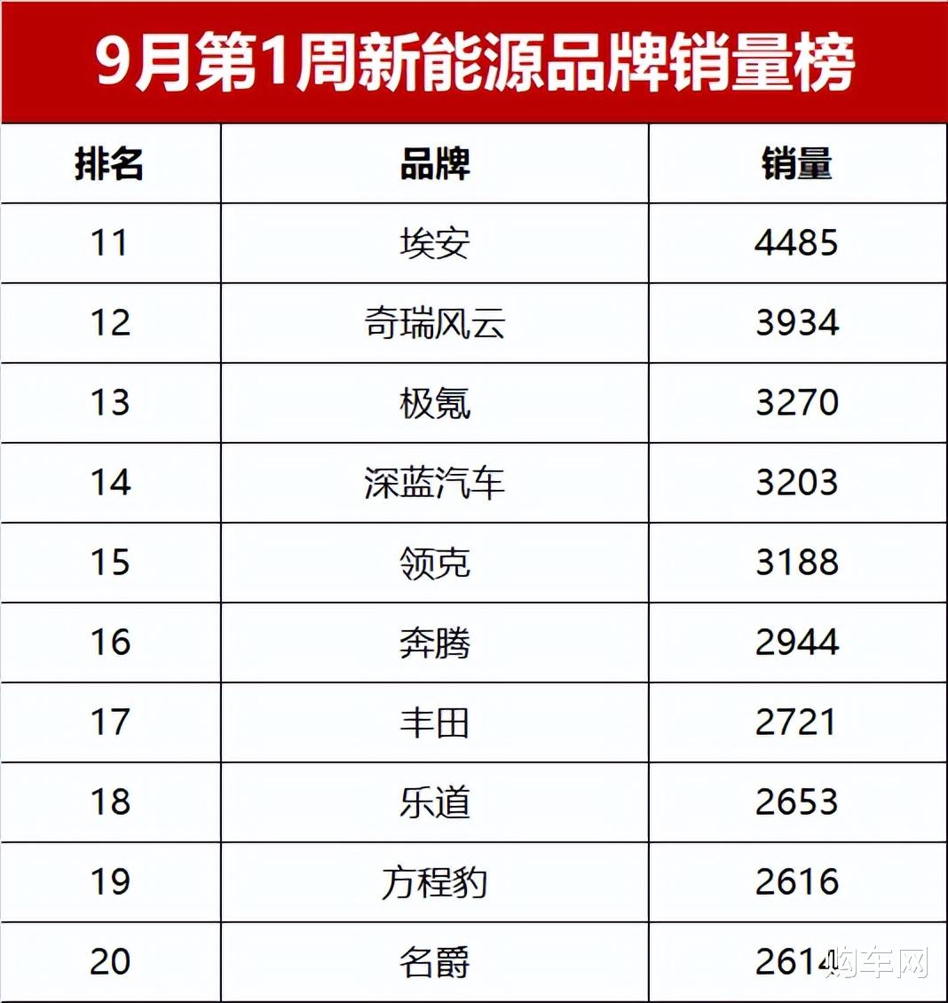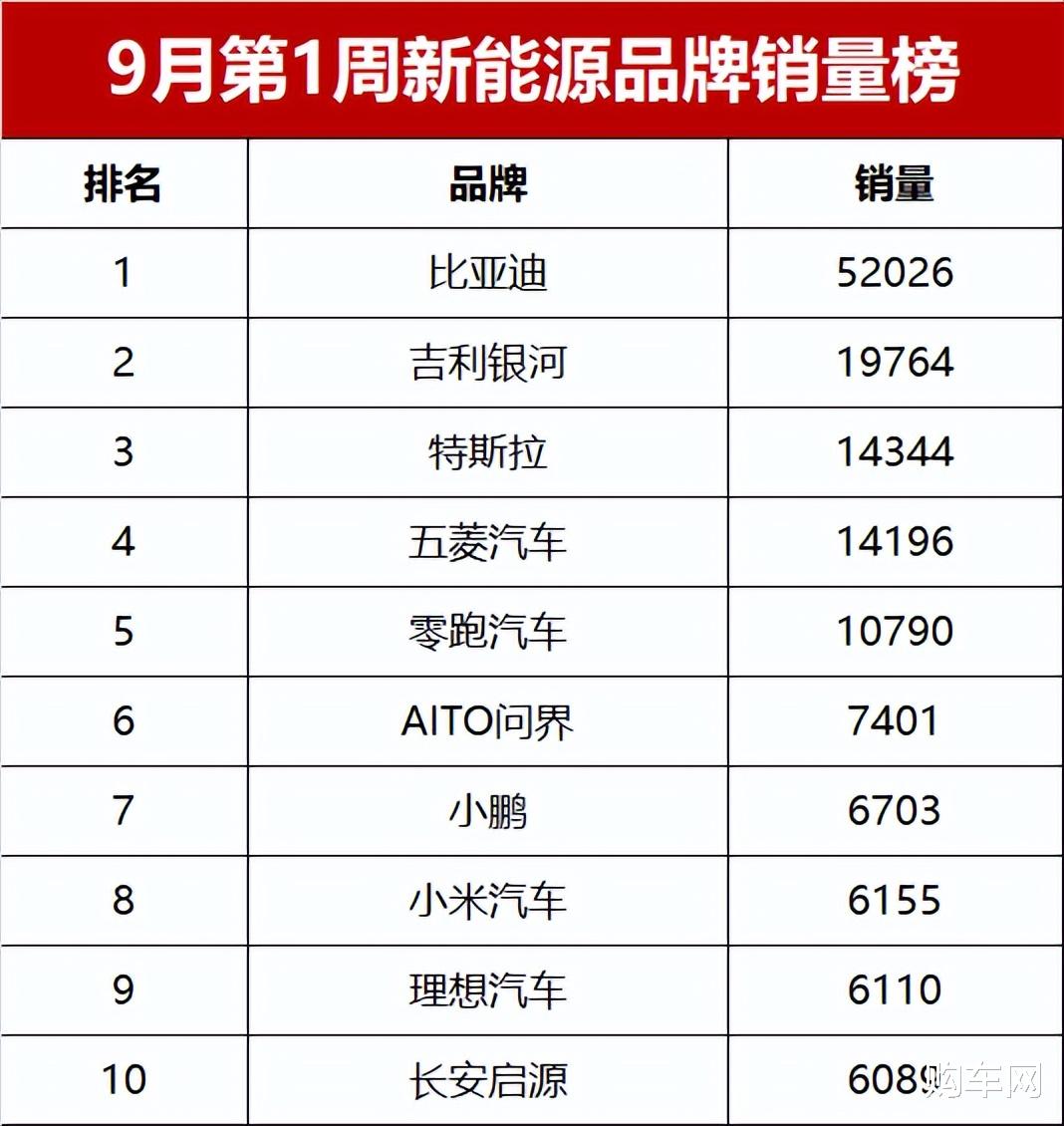 对于今年9月第1周国内新能源汽车品牌的终端销量情况,您是怎么看的?欢迎留言讨论!